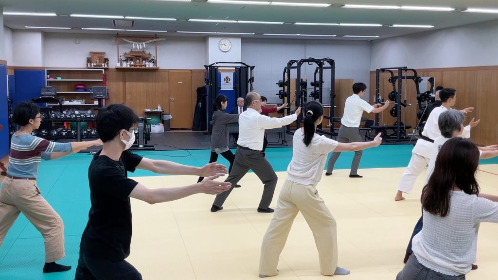 続いて行われたのは、ゆったりとした動きが特徴の太極拳体験です。