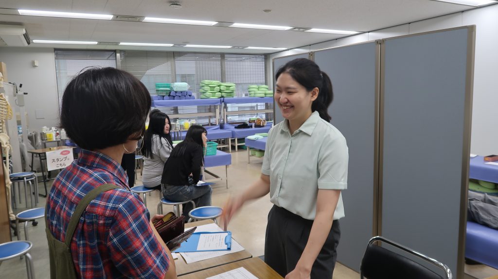 今回も指導教員の元、学生たちが提供するあマ指(あん摩マッサージ指圧の略)体験や、