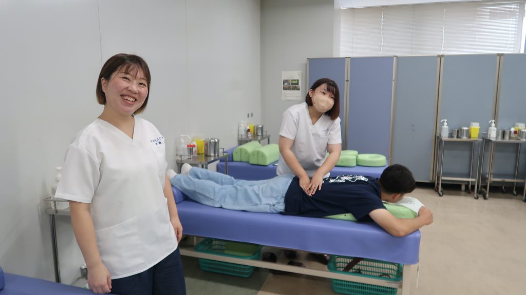体験者の問診票をもとに会話を交わしながら手技を魅せていました。