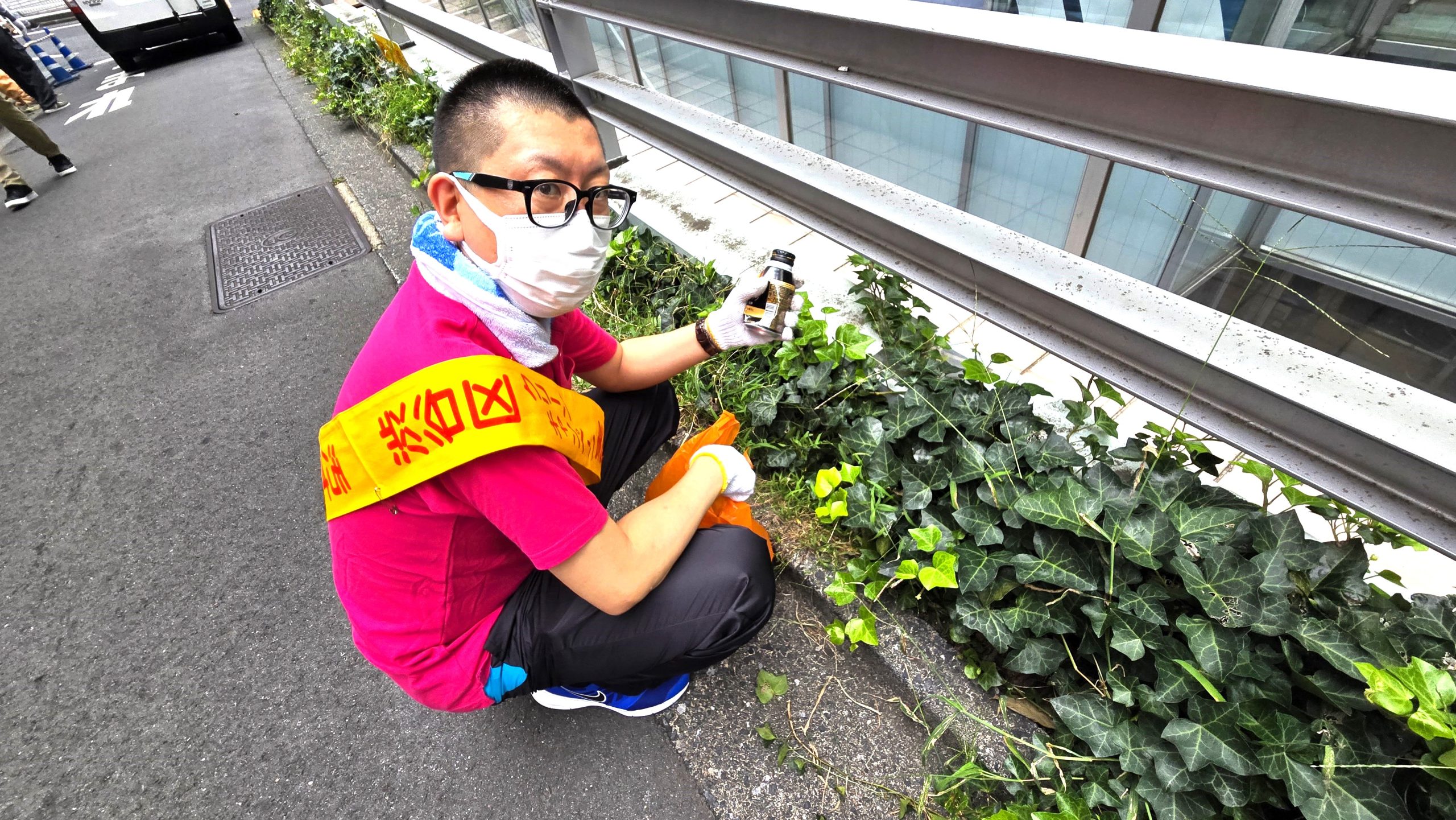 植え込みの裏や建物と排水溝のわずかな隙間などには多くのゴミがありました。