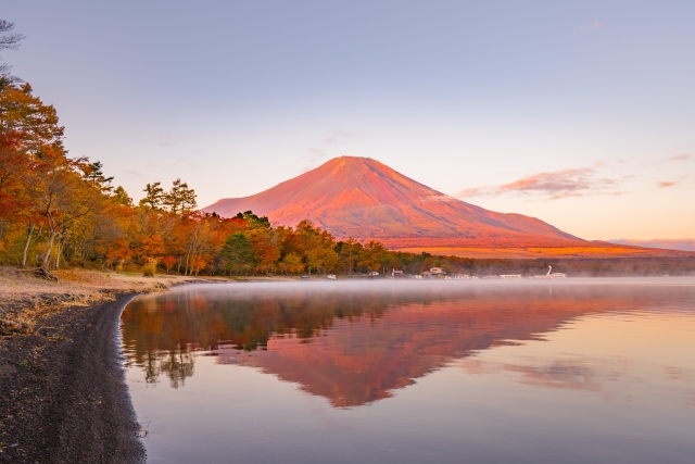 山中湖紅葉と赤富士(旭日丘湖畔緑地公園周辺) 撮影者:kt-watさん